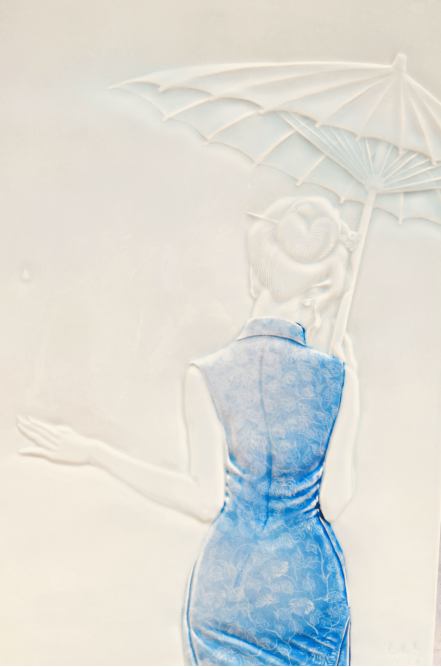 (《雨中有朵云》辽宁大官窑传承人王永亮浮雕瓷板画作品)