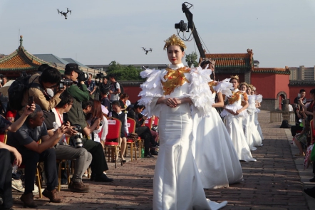 在这个满族建设的第一座皇宫里,在最有特色的十王亭前,向全世界展示中国女性国服的魅力。