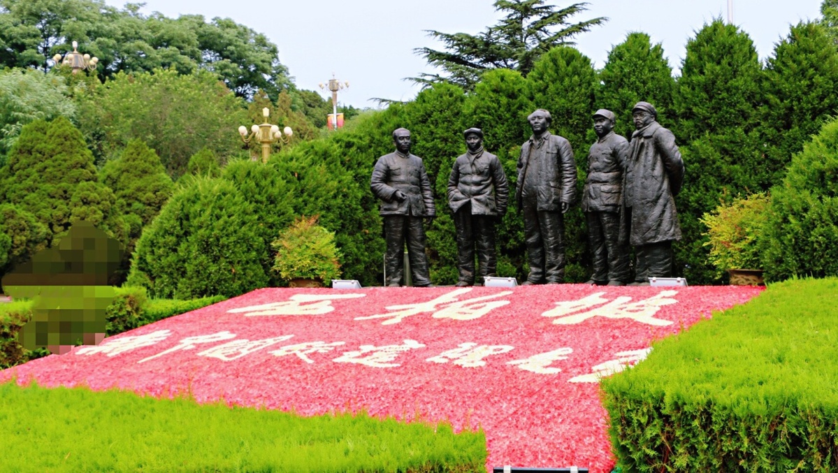 在西柏坡纪念馆广场前,矗立着毛泽东、刘少奇、朱德、周恩来、任弼时同志的高大铜像。当年党中央的“五大书记”步履矫健,充满了胜利的喜悦和未来的信心。