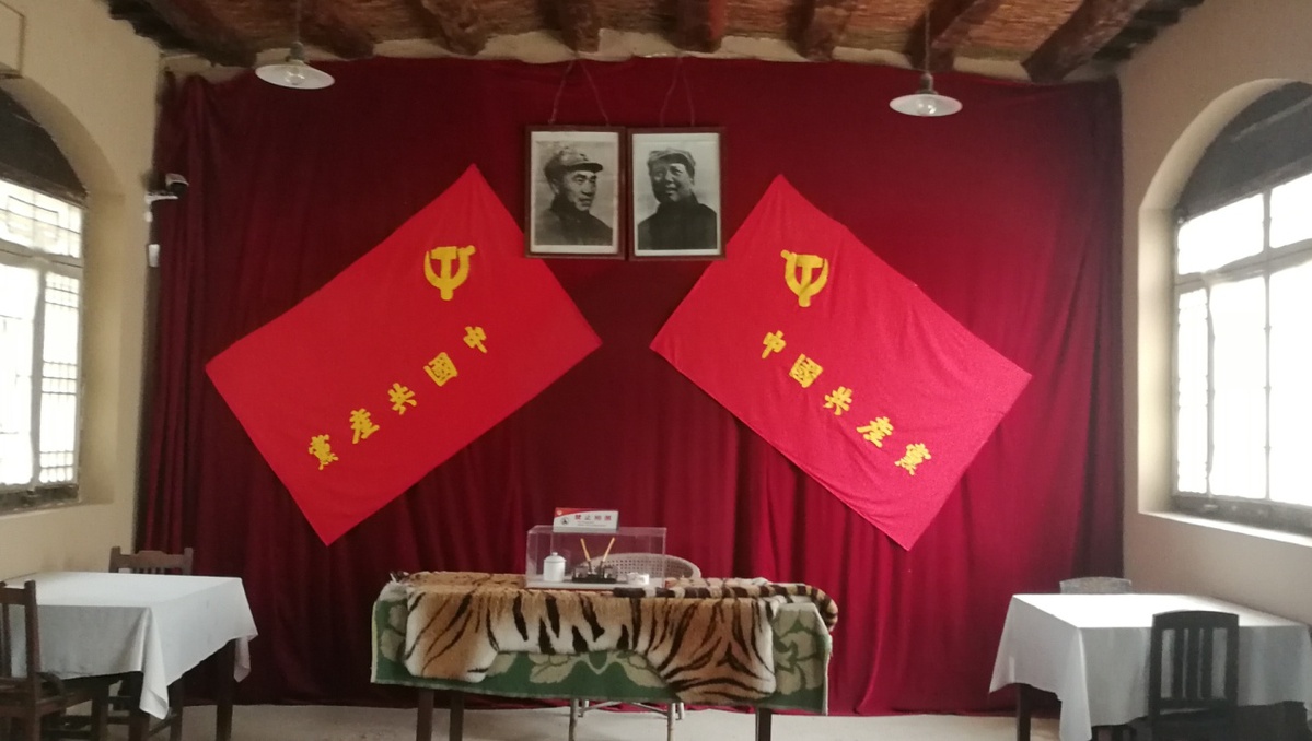 一个普通的农家大院、一间宽敞的农家大屋,曾经是中央工委的大伙房、也是具有伟大历史意义的中国共产党七届二中全会旧址。看着主席台上方的党旗,我似乎听到了毛泽东同志那浓重的湖南口音:“中国的革命是伟大的,但革命以后的路程更长,工作更伟大,更艰苦。这一点现在就必须向党内讲明白,务必使同志们继续地保持谦虚、谨慎、不骄、不躁的作风,务必使同志们继续地保持艰苦奋斗的作风。”