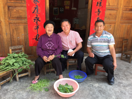 (图为作者与吴天来及其90多岁的老母亲合影。 王九丁 摄)
