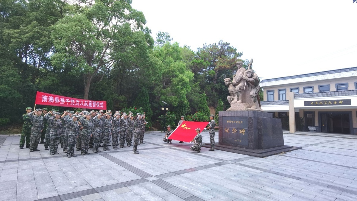 (图为南澳县女子民兵连新战士入队宣誓仪式。陈建文 摄)