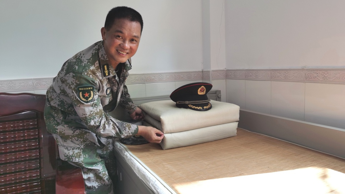 (图为郑燕武在‘家’整理内务。陈建文 摄)