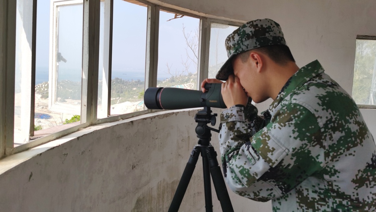 (图为哨员在哨所观察海面动态。陈建文 摄)