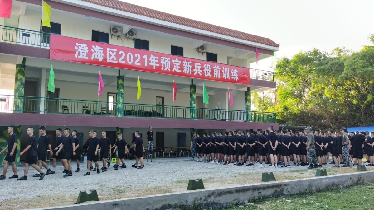 (图为预定新兵正在进行服役前训练。蔡丽嫦 摄)