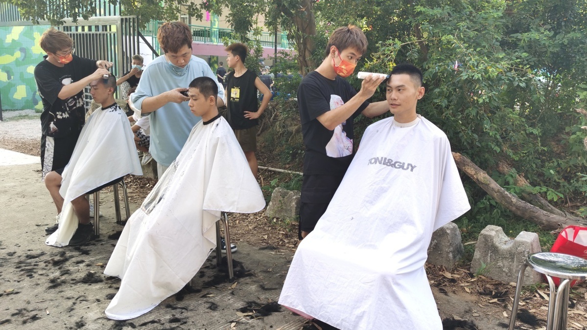 (图为人武部请来理发师为新兵们美容。蔡丽嫦 摄)