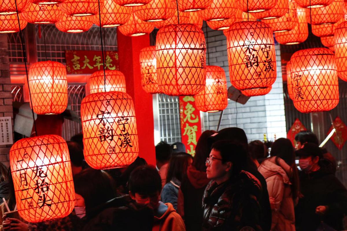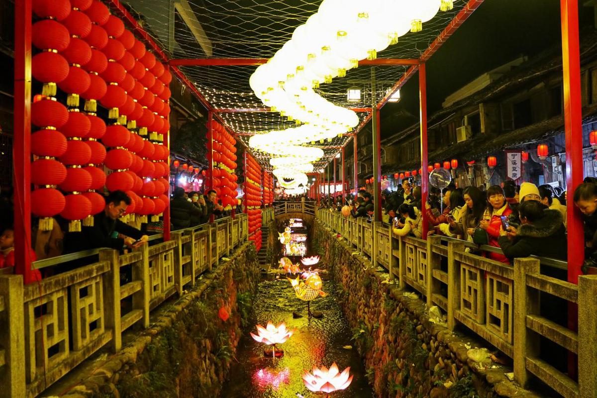 中华元宵皆三五,宁溪灯会独二二。近日,“二月二灯会”期间,位于浙江省台州市黄岩区宁溪镇的宋渠直街上游客如织,民众纷纷前来赏花灯、观非遗、逛市集。