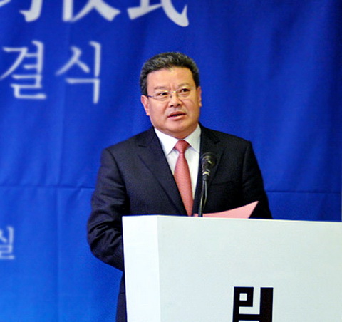 孟凡利在首尔新闻发布会上介绍中韩产业园情况