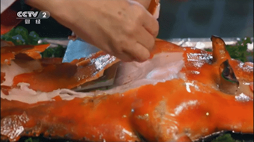 其次,让镜头灵动起来,让食物的状态最美化。《千年陕菜》常用镜头呈现食物成熟鲜艳绽放的最美时候,选择最佳角度,冒热气、带响声,如烹饪时产生的现场声,食客品尝的吮吸声,甚至现场满足的笑声都是给食欲加分的项目。烤肉的拍摄,用话筒收音冒油发出的吱吱声。因此,呈现出来《千年陕菜》有滋味(声响性),有风味(呈现性)、有玩味(趣味性)、有品味(欣赏性)、有回味(印象性)、有韵味(感受性)等独特的审美享受。