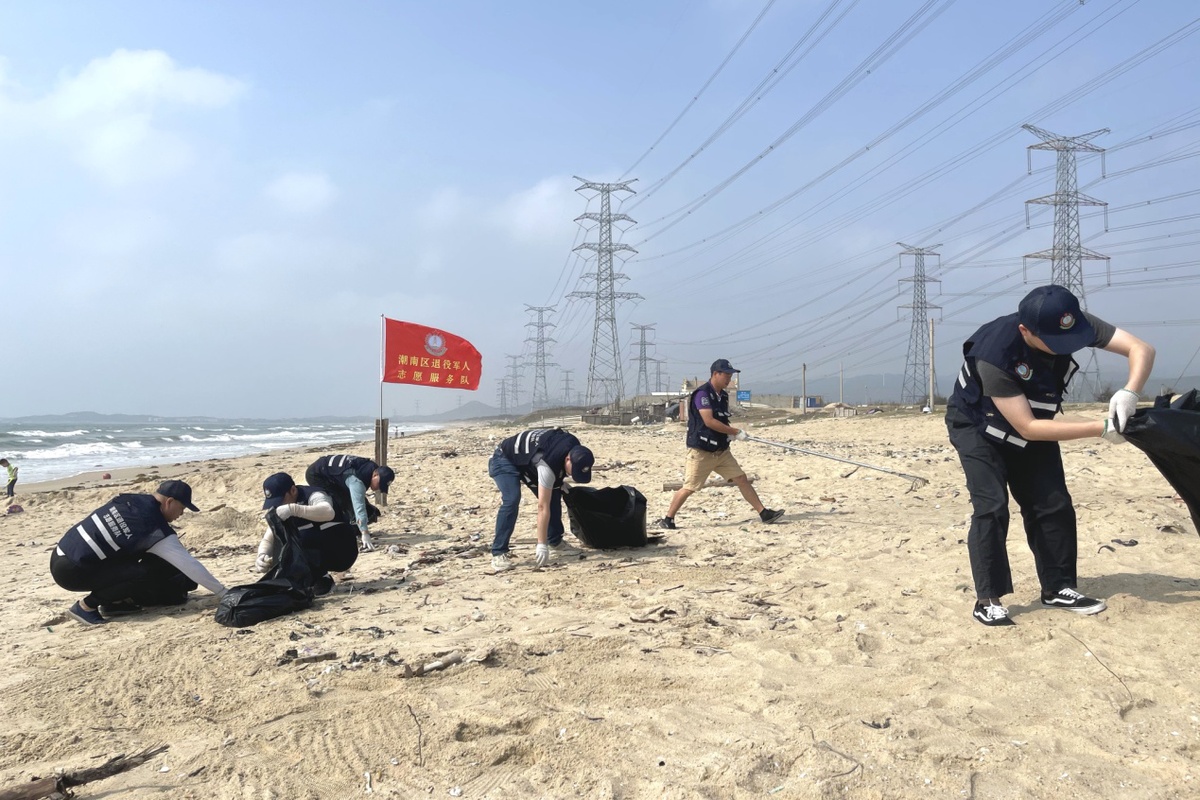 (图为潮南区退役军人志愿者们到海滩上开展“净滩活动”,保护海洋环境。郑文雄 摄)