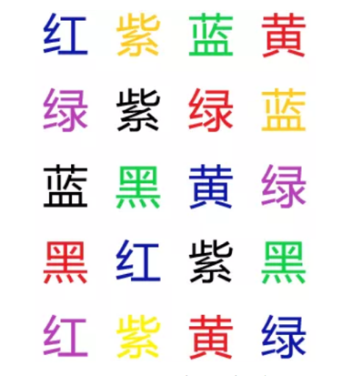 第一,请快速说出以下每个字的颜色,注意不是读出那个字: