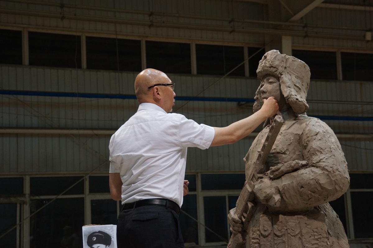 (鲁迅美术学院院长李象群为雷锋学院创作雷锋塑像)