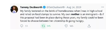 他们在致辞里闹的笑话可不止这一点。就在抵达的当天,这些议员也做了答谢演讲。其中一位有华裔血统的女议员,泰米·达克沃斯,在演讲里痛陈了自己的家族史。