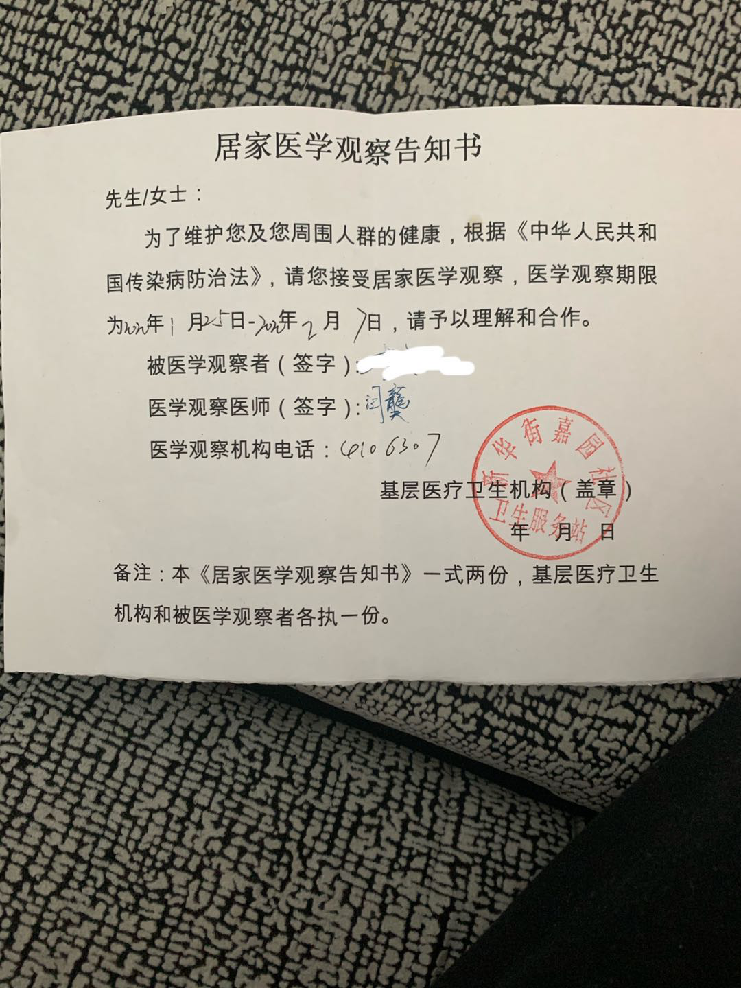 2216的住户是周健,2019年10月,为了孩子上学方便,他们一家刚租了这里的一套小公寓,正准备收拾离开回家过年,就接到了隔离通知书。他也第一时间加入了这个群。