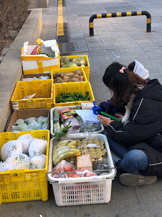 王媛媛说,我们以前从来没有做过这项工作,一点头绪也没有,我和屈欣根据每户上报的物资做好统计,核对,再发到群里让大家再次核对,生怕给大家漏掉了。晚上八点开始统计,全部做完也就到了11点多。第二天,我们骑着电动车就去了东方红新百超市,这是宁夏银川比较大的一家生鲜超市,根据统计买完,整整12箱,我们的电动车根本就拉不回去。