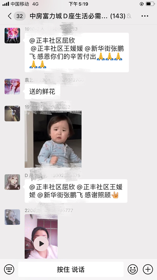 d座有一位网名叫“忆苦思甜”的超市大姐从王媛媛手中接过了群主的接力棒,她说:我们的群需要有人维护,有人管理,我们的d座仍然需要有人服务。