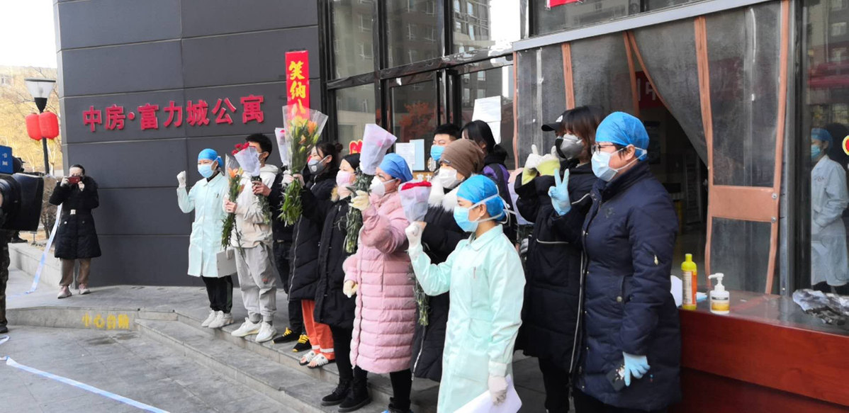 2月8日上午,14天的隔离期完美结束,d座没有再发生一起疑似病例,d座90户161人成功解除隔离。下午3点,居民们走出d座,迎接他们的是美丽的鲜花。此刻,线上熟悉的他们互相称呼着彼此的门牌号。