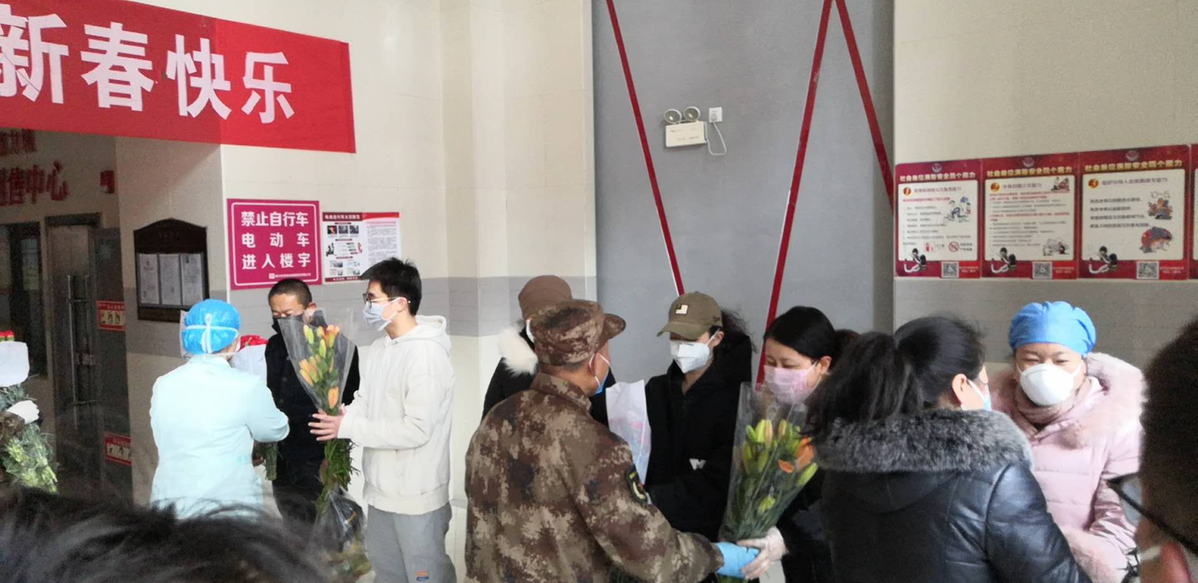 好消息是,2月8日下午3点,d座90户161人都收到了社区卫生站的解除隔离通知书,大家走出d座,接到了庆祝胜利的鲜花。