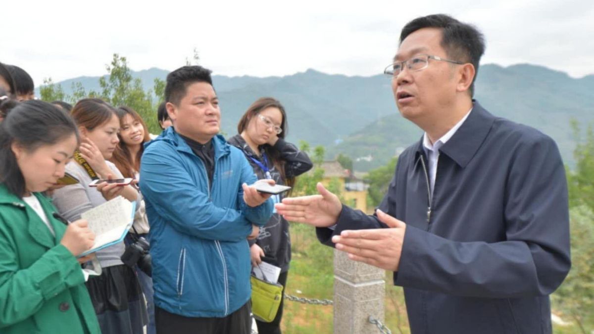 (图为刘自强县长正在向大家介绍情况的场面。摄影:杨应森)