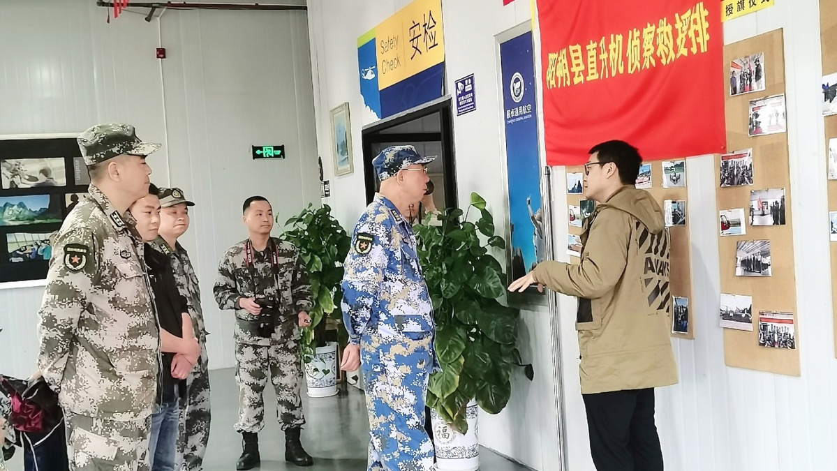 在阳朔县,由人武部在广西展卓通用航空有限公司组建的直升机侦察救援民兵排,他们始终坚持“战时应战、平时应急”的战略使命,在2020年夏季的特大洪水抢险中,他们立刻出动直升机进行险情侦察和物资投放,在通讯失联的山寨村落搜寻受困群众。公司总经理谢波说,“顾大局是我们的责任和担当”。