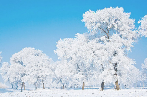 in the north of china, the land becomes empty in winter. aside from the howling winds and piercingly cold currents, the earth seems to lack vigor and fresh colour. the people feel often depressed, the ancients calling it "autumn injury " or " winter injury". but friends, it is at this time that nature presents a surprise to the northern people. the surprise is the snow, and the beauty of the snow makes the winter of northern china picturesque. to make the thing more surprising, nature presents another treasure– rime.