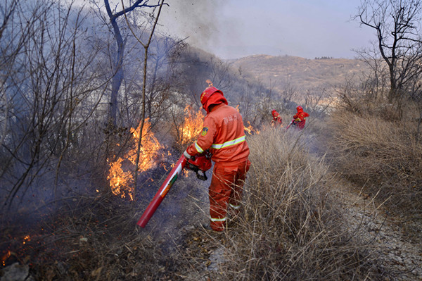 防火队员们每年冬天要烧出60公里的防火隔离带-鞠传江摄影
