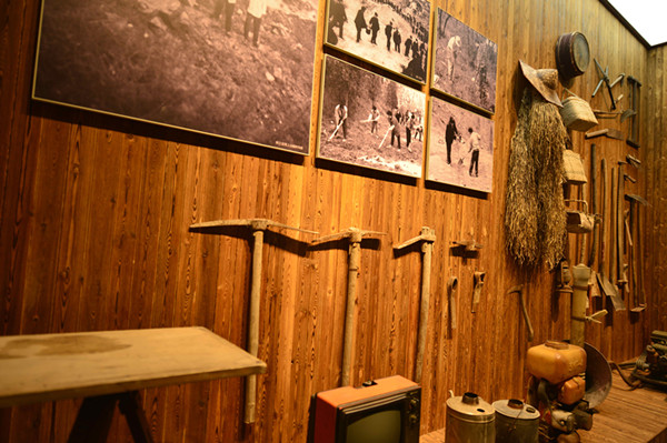 纪念馆展出的当年植树劳动工具-鞠传江摄影