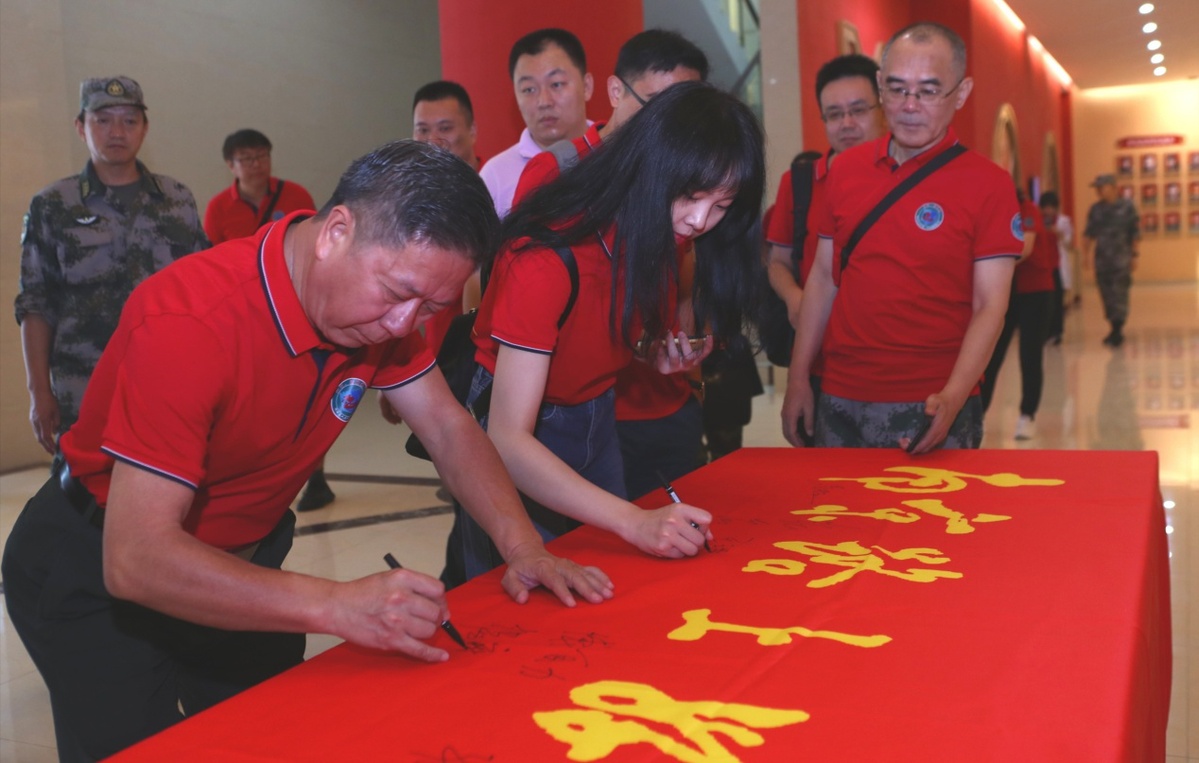“网络名人”在“好八连”展览馆签名。胡雪峰 摄