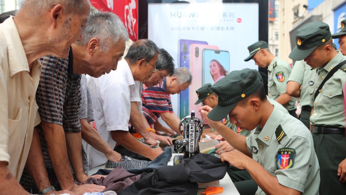 “好八连” 官兵在南京路上为民服务。胡雪峰 摄