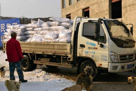 中国农历小年的这天,烟台爱心救助流浪动物收容中心迎来了市民林哲民捐赠的6吨狗粮。