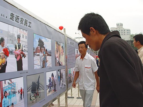 2007年7月,詹安稳《走近农民工》专题摄影作品展,在银川市南门广场举行。