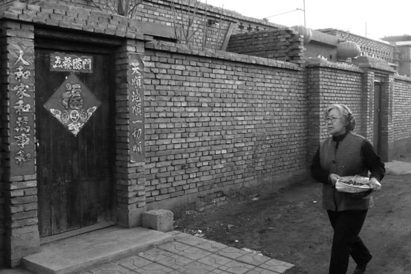 2007年春节,银川市西夏区北京西路街道办事处金波社区,一居民到邻居家去拜年。