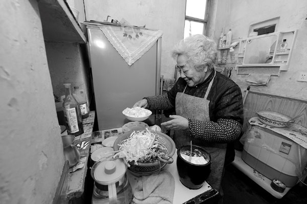2011年2月2日(大年三十),银川市西夏区北京西路街道办事处金波社区,一居民正在做年夜饭