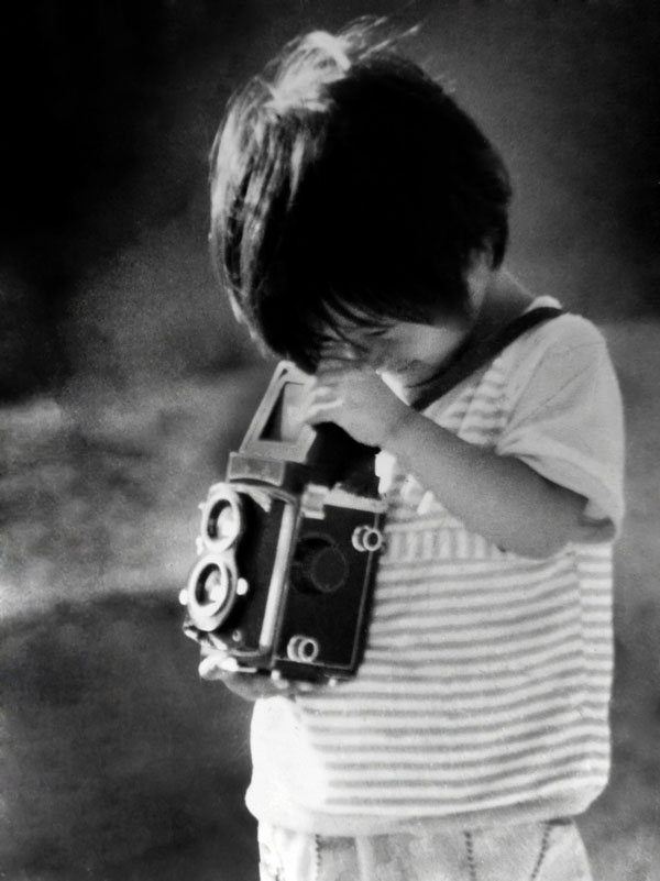 1990年,一位小朋友在摆弄120相机。80年代初期,海鸥双镜头相机风靡一时。
