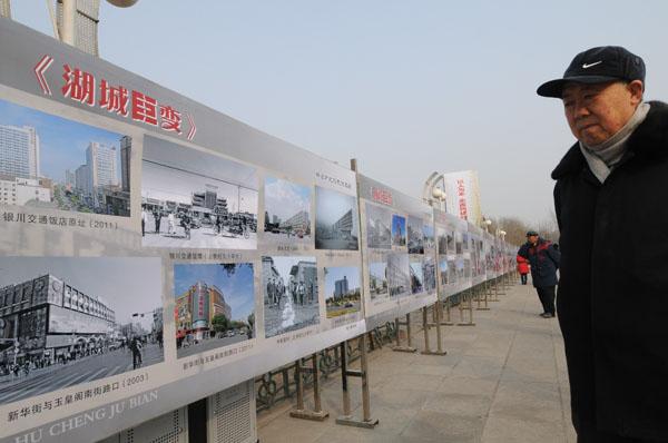 詹安稳《湖城巨变》专题摄影作品展,2011年12月,在银川市光明广场与市民见面。