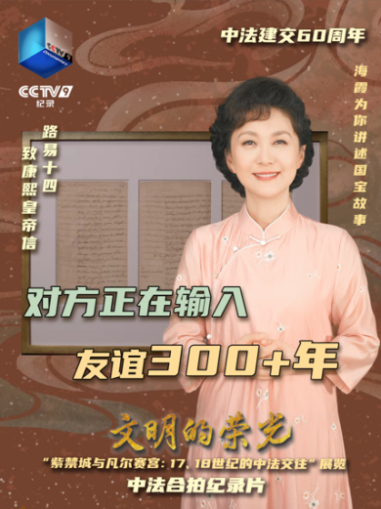 2024年是中法建交60周年暨中法文化旅游年,“凡尔赛宫与紫禁城”展览被列入2024年中法精品人文交流活动重点项目清单。纪录片《文明的荣光》记录了4月1日起在故宫博物院文华殿开幕的“紫禁城与凡尔赛宫:17、18世纪的中法交往”这一盛大事件,凸显中国和法国作为东西方文明的重要代表,交往和交流的悠久历史。