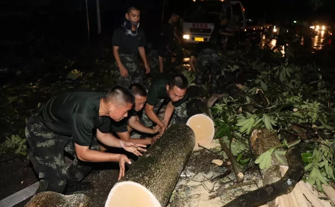 在采访中,齐望万中队长还告诉我,今年7月19日, 凭祥市遭受一场大风暴袭击, 傍晚, 一辆正在市区北大路上行驶的小轿车被突如其来的一棵被风刮倒的大树压住,“有人吗?救救我。”正在营区大门执勤的哨兵陆世安听到有人呼救立刻向中队值班室报告,指导员罗宇星了解情况后,立即带领应急班班长、士官李育斌,王咸宝等几名战士赶到现场:“师傅,别焦急,我们是武警中队的,救你来了!”经过一番努力,被大树砸压在车内的车主农师傅终于被安全救出。