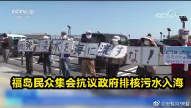 日本福岛民众也举牌抗议,反对日本政府将核污水排入大海。