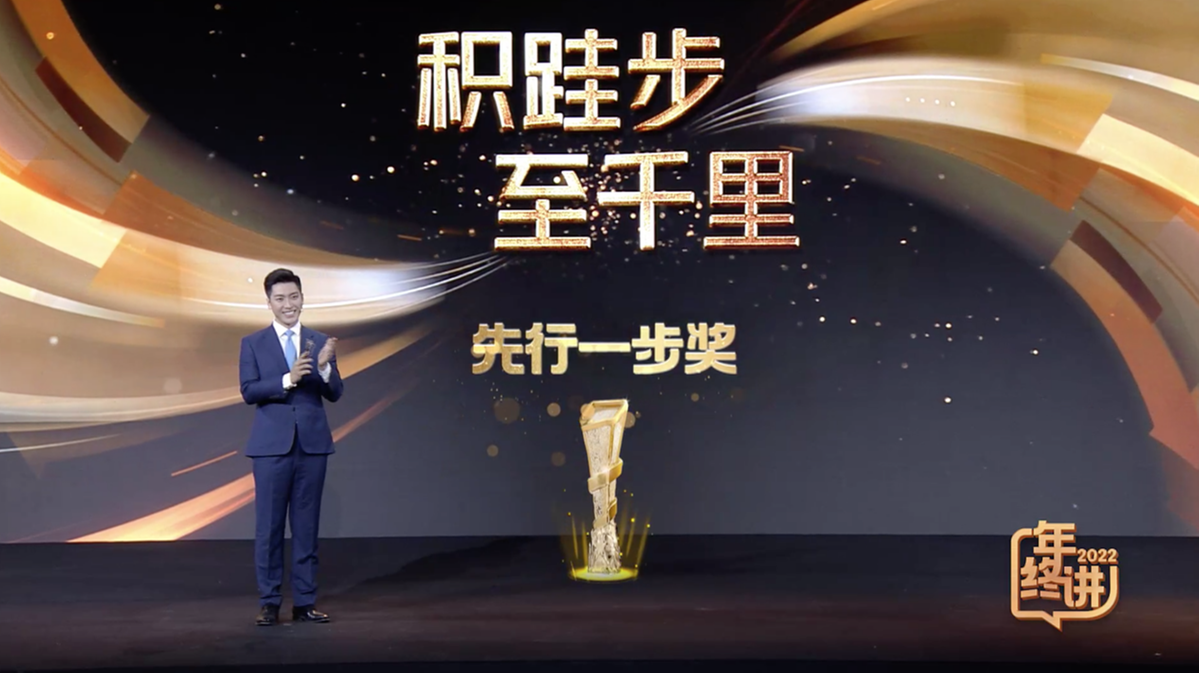 《积跬步至千里——2022年终讲》这档跨年演讲节目除了在表达方式创新之外,在环节的设置上也颇具巧思,令人惊喜。该档节目的“讲”字在节目中延伸出两层意义,一当然就是是“讲”,演讲的“讲”,二出乎意料是“奖”,是略带天马行空的褒奖。节目在每位嘉宾演讲之后,主持人为其颁发一个小小的奖杯,有嘉奖固态电池取得突破的“先行一步奖”,有鼓励中国造船向海图强奋楫逐浪的“大步流星奖”,有为航天育种颁发的“一步登天奖”等等,这些看似天马行空,但又紧扣每个演讲主题的奖项是对“跬步”的敬意,也是对“至千里”的信心。