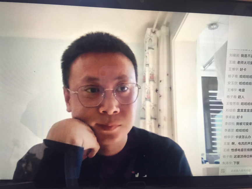 “小小的电脑屏这头是我,那头是105双眼睛,瞬间孤独感袭来,好紧张啊!不知所措之际,试探着说出第一句话:大家能听到我的说话声吗?” 平日里在三尺讲堂上运筹帷幄的他竟然也是既好奇又紧张。