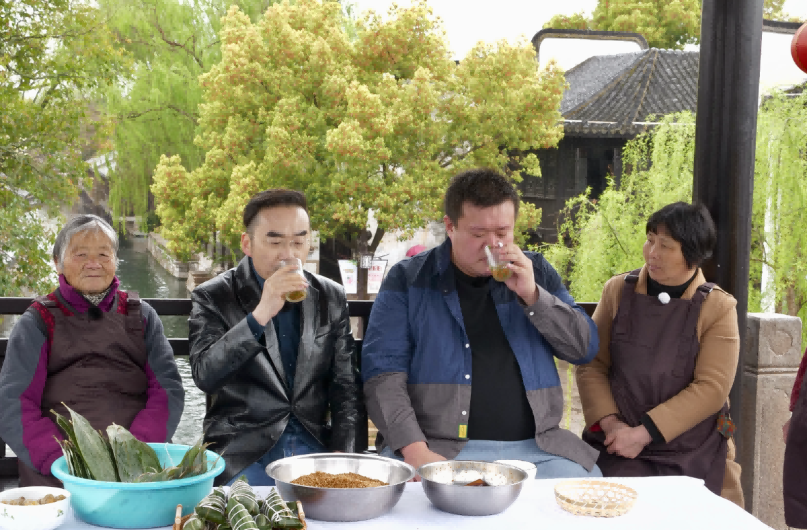 上有天堂下有苏杭。江南有多富庶?节目中仅仅南浔一小镇,就有“四象八牛七十二金狗”之说。清光绪年间,南浔富豪糜集,财产达千万两白银以上者称之曰“象”。五百万两以上不过千万者,称之曰“牛”,其在一百万两白银以上不达五百万者则譬之曰“狗”。徜徉在江南富庶的南浔古镇,热情的当地人请节目嘉宾品尝风味独特的“南浔迎宾三道茶”。第一道为风枵汤,第二道为薰豆茶,第三道是明前龙井茶。打年糕,做米豆腐,包糯米甜粽子和肉粽子,每个风俗都十分接地气,民俗淳厚,趣味盎然。