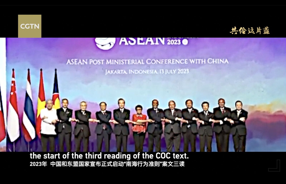 在南海再次成为舆论热点之际,总台再次独家推出cgtn出品的纪录片《共绘这片蓝》,记录中国致力于把南海打造成海洋命运共同体的“样板田”,对外讲述中国在与南海沿岸各国开创合作共赢道路的故事,展现了中国严格遵守《南海各方行为宣言》、《区域全面经济伙伴关系协定》的大国责任和担当,促进区域合作与繁荣。
