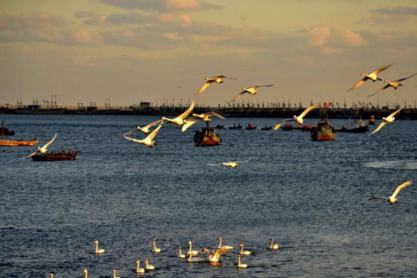 寒冬时节,记者来到中国最大的天鹅越冬栖息地——山东省最东端的荣成市海滨。
