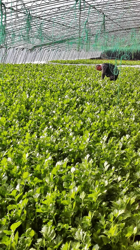 菜农周学臣在忙着管理即将上市的有机芹菜。鞠传江 摄影