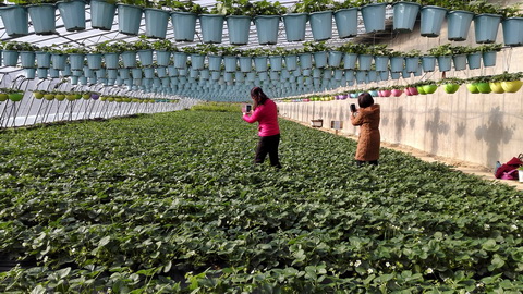 防治蔬菜的病虫害主要靠生物农药、灭虫灯、防虫网、杀虫蜂、人工捕捉等方式。在草莓大棚里,记者看到纷飞的蜜蜂正在采蜜,利用蜜蜂帮着授粉会大大提高草莓产量。栾平东说:“这些草莓到春节正好成熟,价格是普通草莓的5倍以上。”