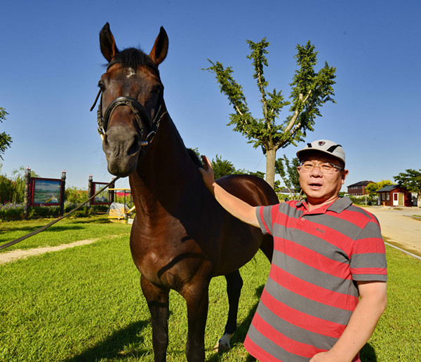“这匹马是从德国引进的,叫‘和圣之星’,这马是马场的功臣呢!”范家溢说。