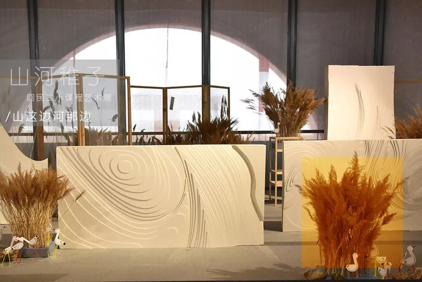 《山这边,河那边》宁夏在地风物课程艺术展——室内展厅直接与万物启蒙课程呼应,展示了孩子在经历课程探究之后对家乡风物的再理解,再创造。《不周山传奇》、《在河之洲》、《海市蜃楼》、《我的心爱着世界》、《我唱自己的歌》、《绿野仙踪》、《我耕耘》七个主题分别表达了孩子们对贺兰山的认知和追溯,表达对黄河、黄土、黄沙、芦苇的珍爱,对家乡一草一物的亲切。