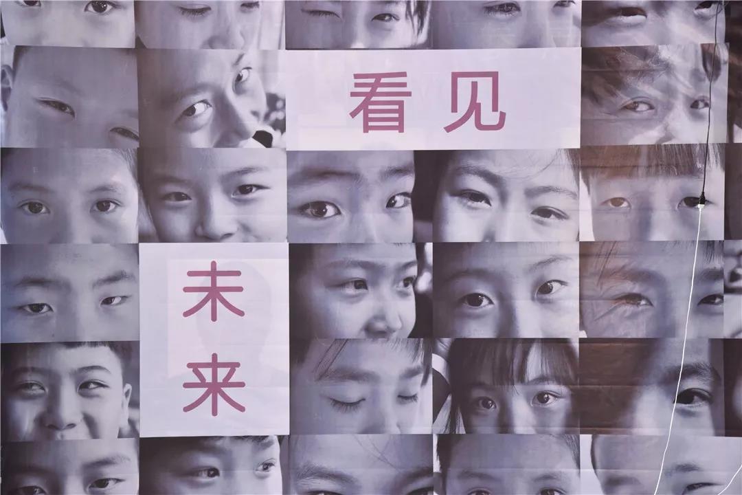 展厅门口南面以“遇见孩子,看见未来”为主题的黑白照片墙,这是从7500名回二孩子中随机捕捉的孩子的眼神,从他们的眼神中我们看到了他们对未来的好奇、困惑、探问、憧憬......