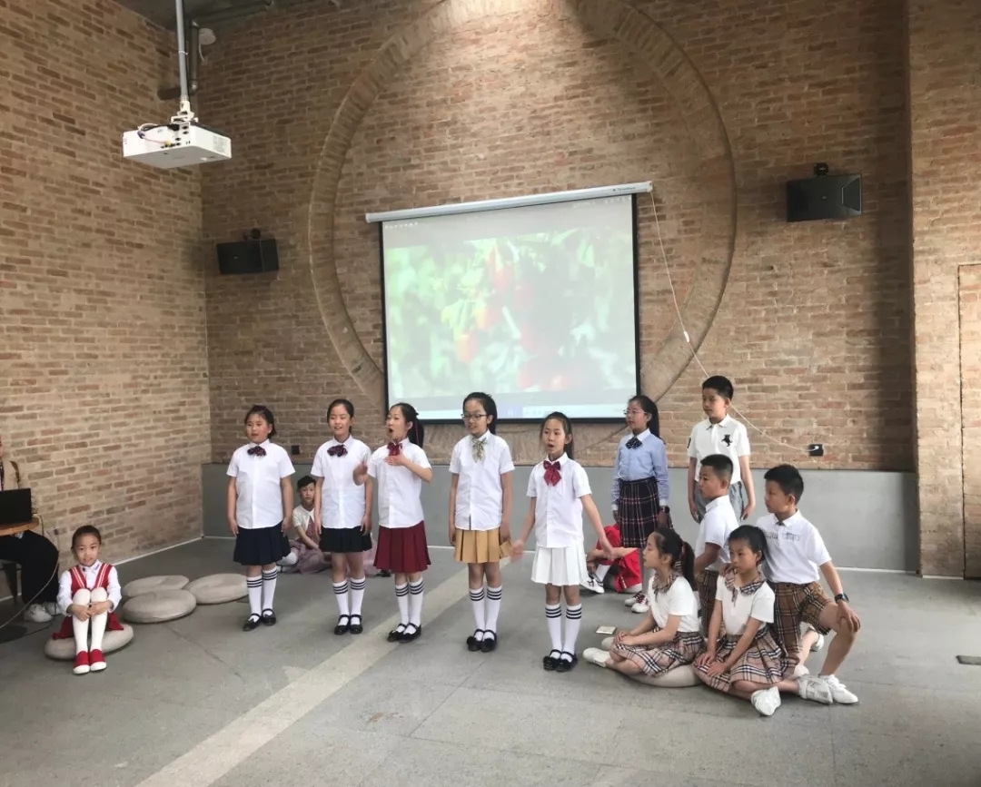 听窃窃私语诗享会上,一群快乐的孩子,在这蜜意叠加的台上,闪出快乐的光芒。他们自然质朴的童声回绕在诗享会的现场。一群稚嫩的孩子,用最纯真的喃喃细语让我们感受到了自然、春天、四季交错,宇宙变幻。