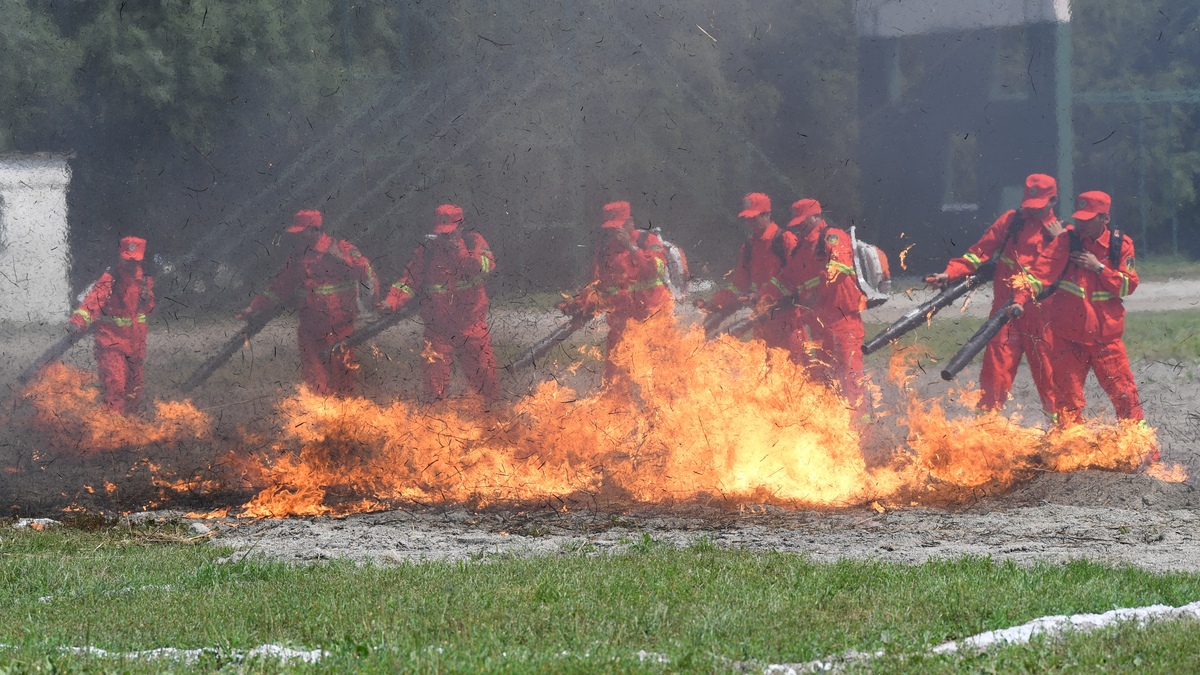 (图为哈尔滨市民兵防火分队在组织扑火演练。常智科 摄)